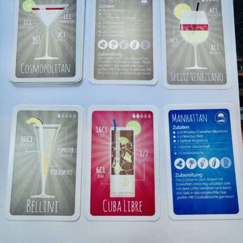 Das Set kann sowohl als Rezeptkarten Sammlung als auch als Kartenspiel oder Quartett genutzt werden. Dadurch verbindet es Unterhaltung mit praktischem Wissen rund um Cocktails und Mixtechniken.