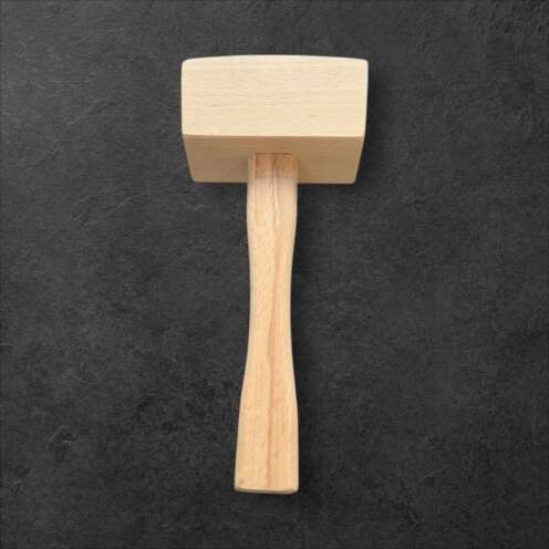 Holzhammer: aus robustem Buchen‑ oder Eschenholz, ausgewogen und angenehm in der Hand